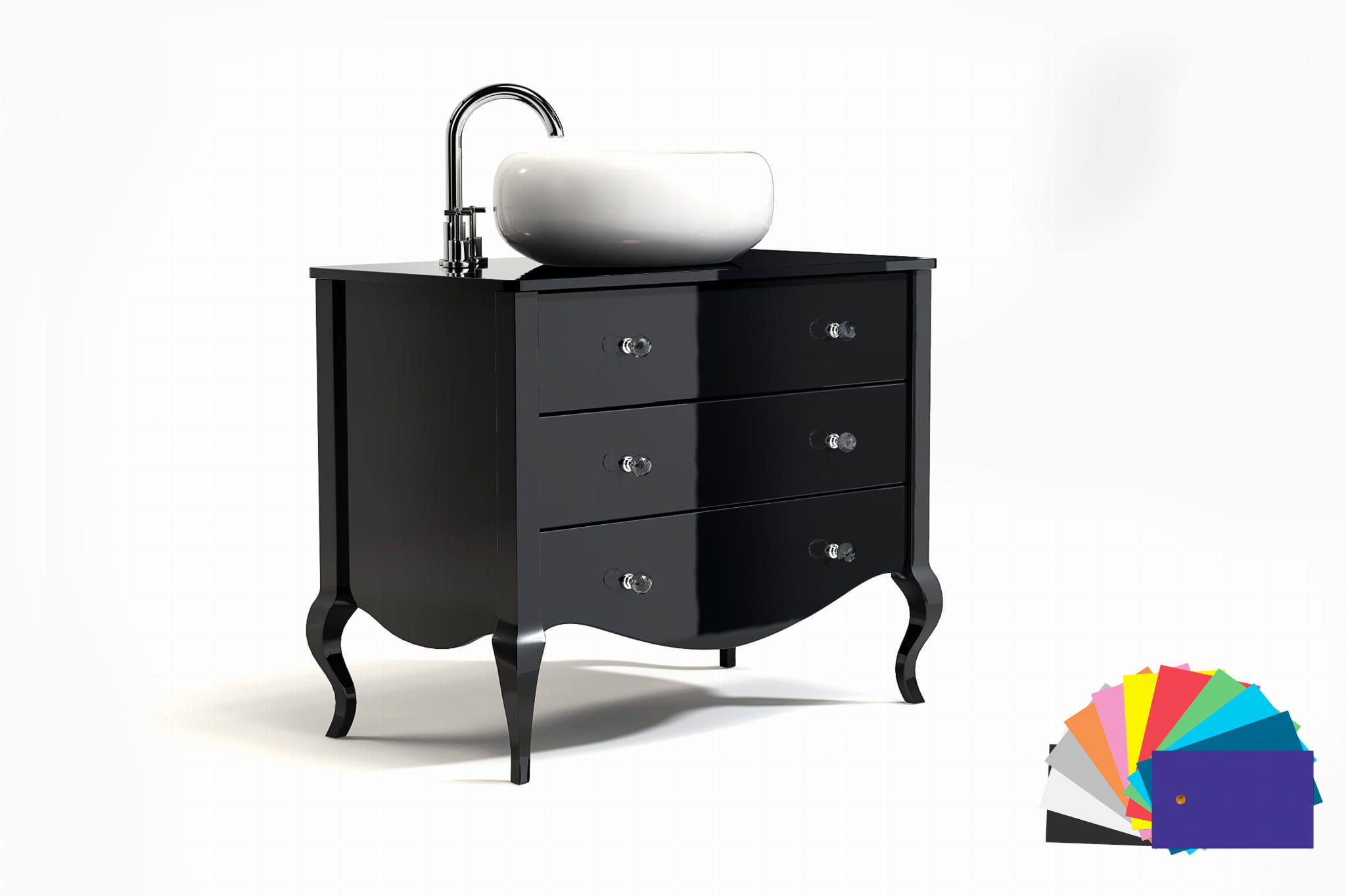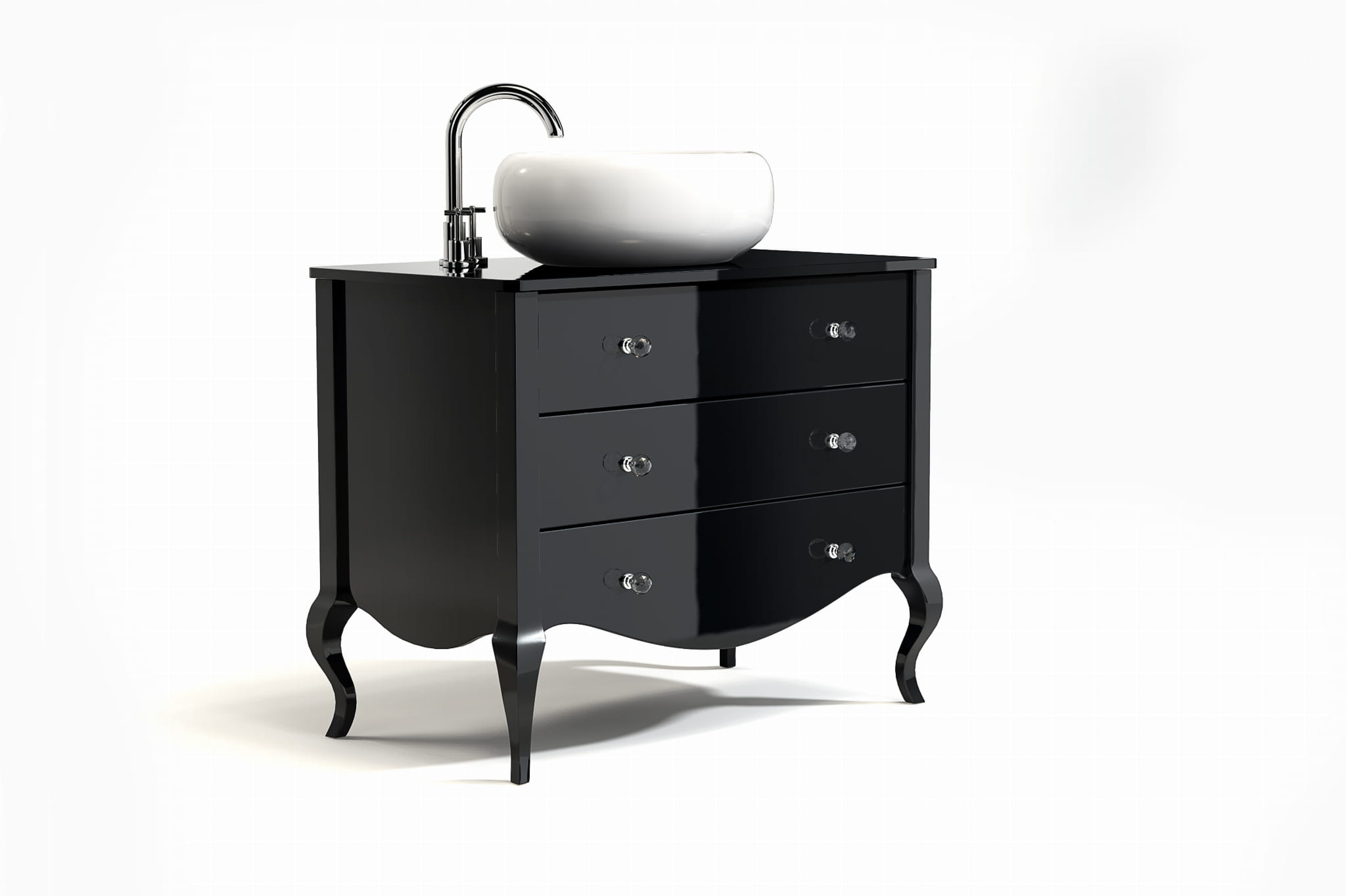 Komoda BASSA to wyjątkowy mebel w stylu glamour, który łączy elegancki design z najwyższą jakością wykonania. Dzięki starannie dobranym materiałom oraz precyzyjnemu procesowi produkcji doskonale sprawdzi się zarówno jako stylowa komoda łazienkowa, jak i element wyposażenia eleganckich wnętrz.