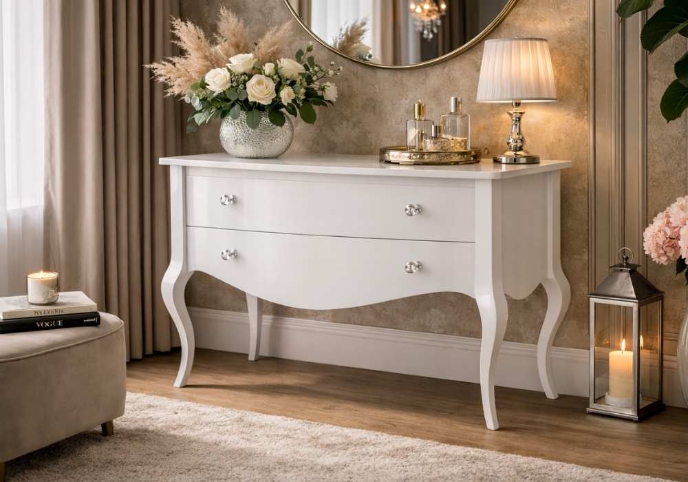 Wysoka odporność na zarysowania. Komoda glamour na wysoki połysk lub matowa.