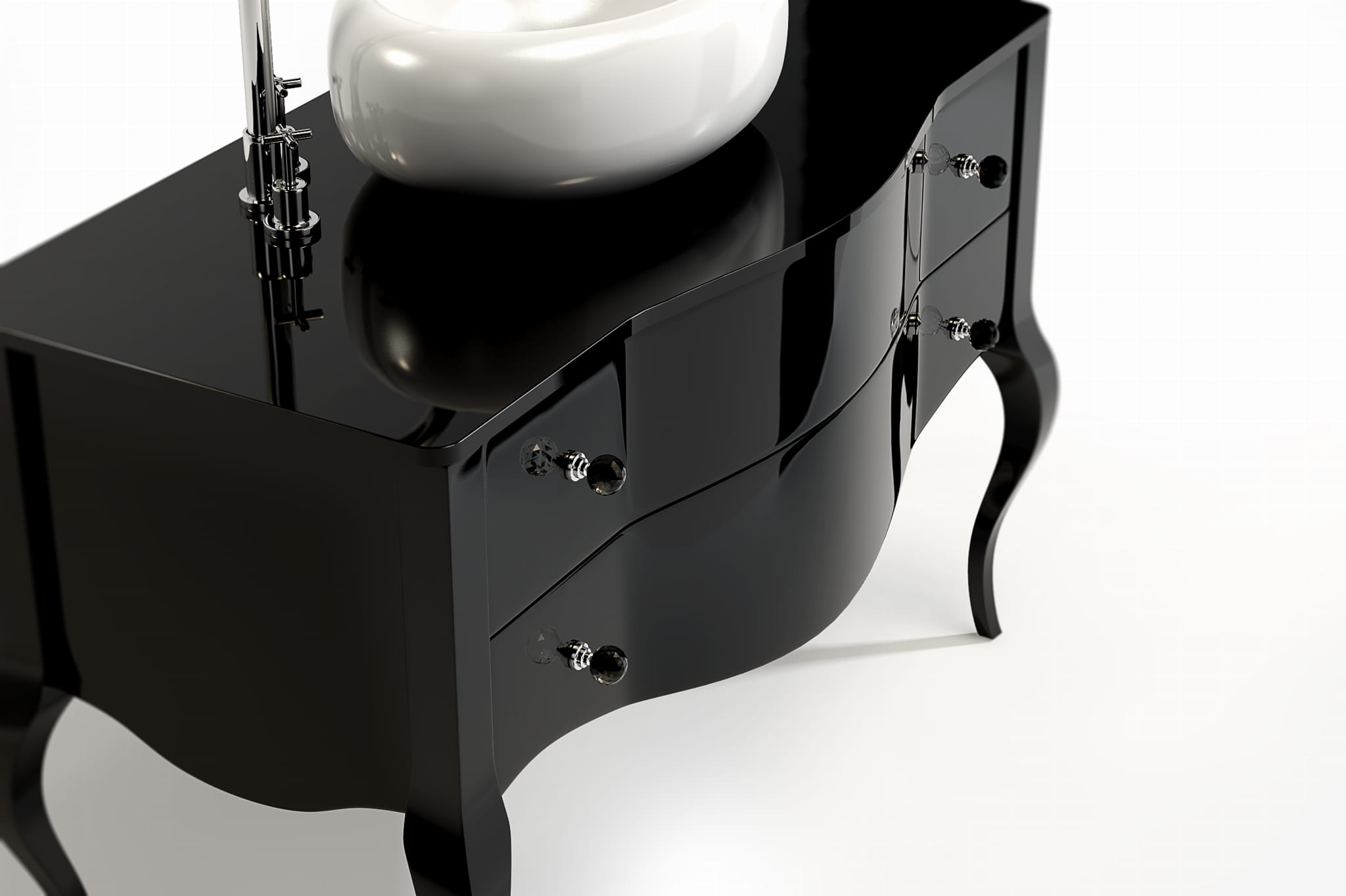 Nasze komody wykańczane są z użyciem 7 warstw wysokiej jakości włoskich lakierów, które następnie są ręcznie szlifowane i polerowane. Dzięki temu powierzchnia mebla uzyskuje idealną głębię połysku lub subtelny satynowy efekt.