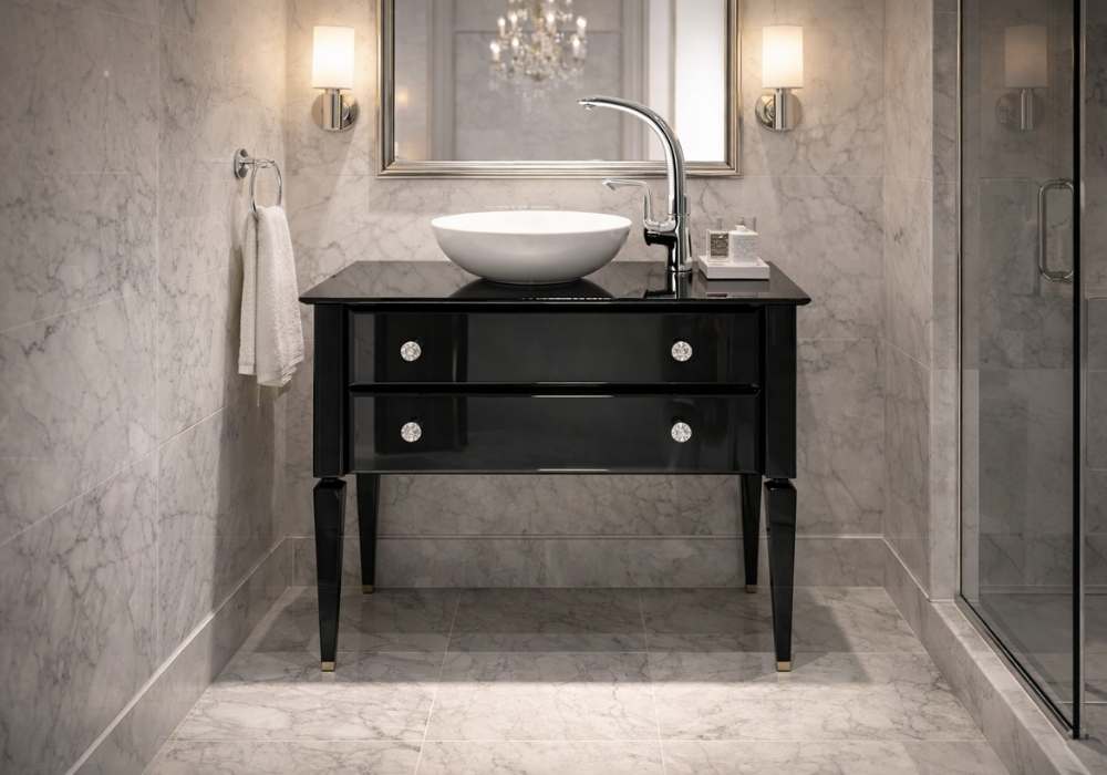 Komoda glamour GALICJA 88 cm – luksus w stylu art déco z funkcją łazienkową