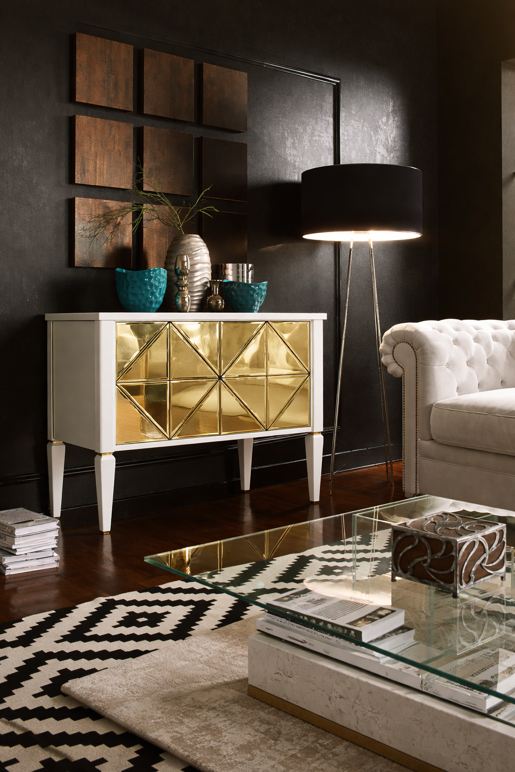 Połączenie nowoczesnej formy z efektowną lustrzaną powierzchnią sprawia, że komoda doskonale odnajdzie się w aranżacjach w stylu glamour, modern classic oraz eleganckim stylu nowojorskim.