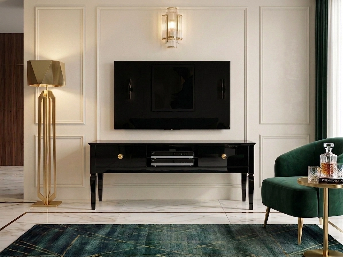 Stolik RTV DIAMOND doskonale wpisuje się w aranżacje glamour, modern classic oraz styl nowojorski, nadając wnętrzu elegancji i ponadczasowego charakteru.