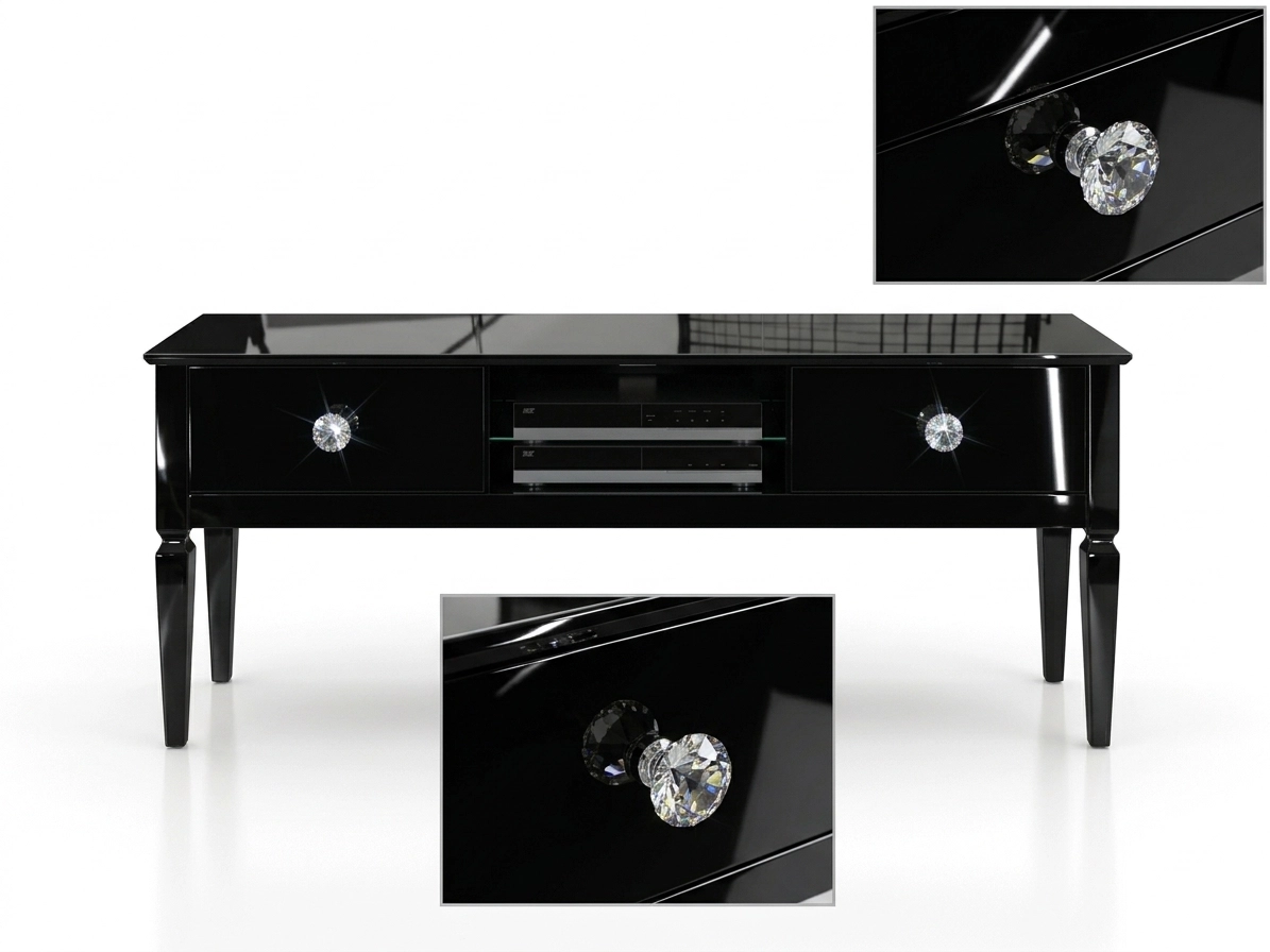 Stolik RTV glamour DIAMOND to wyjątkowy mebel powstały na podstawie autorskiego, zastrzeżonego projektu. Każdy egzemplarz wykonywany jest ręcznie z najwyższą starannością, co stanowi odpowiedź na oczekiwania klientów poszukujących oryginalnych i luksusowych elementów wyposażenia wnętrz.