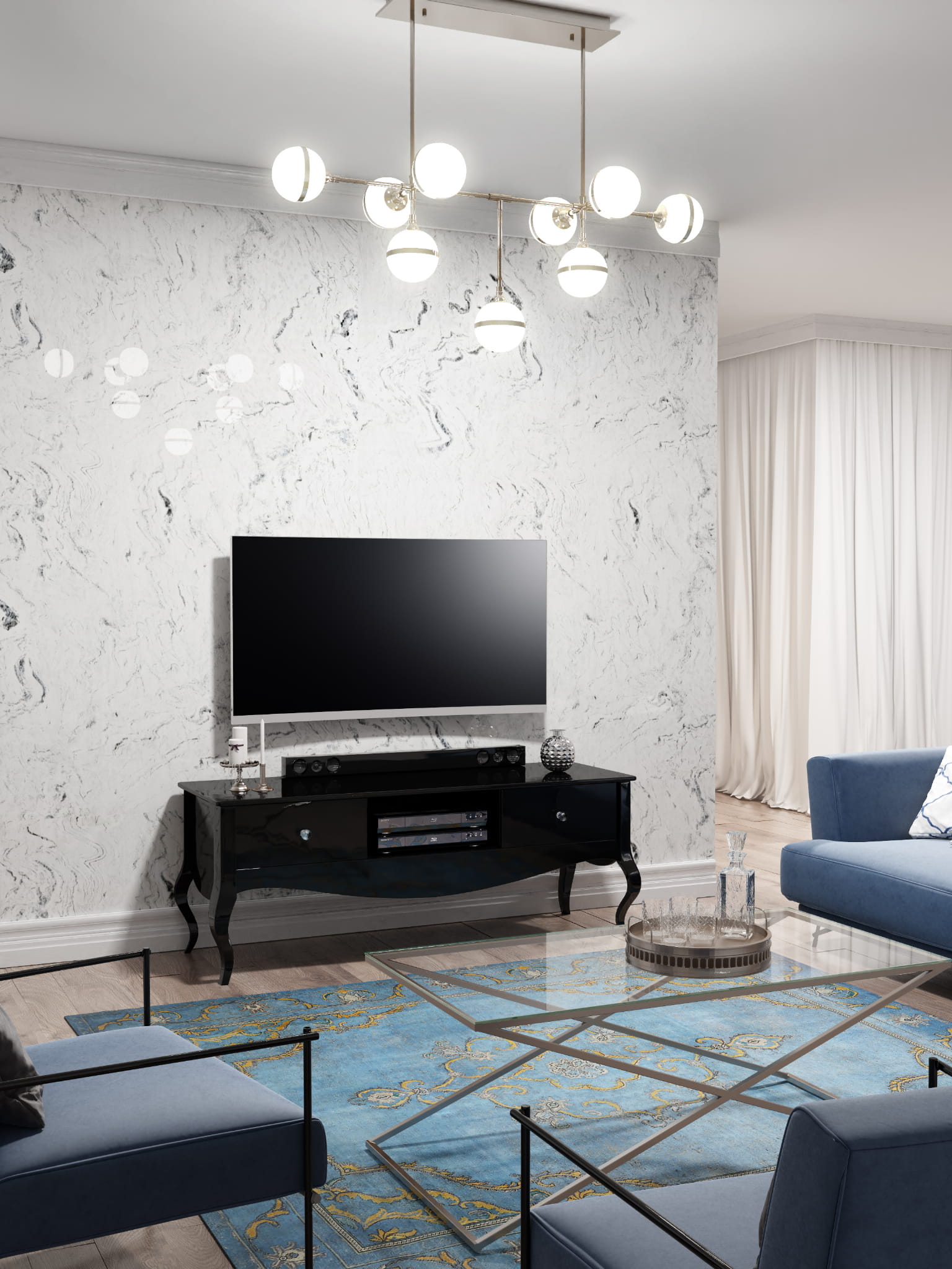 Stolik RTV MERANO doskonale komponuje się z aranżacjami w stylu glamour, modern classic oraz nowojorskim.