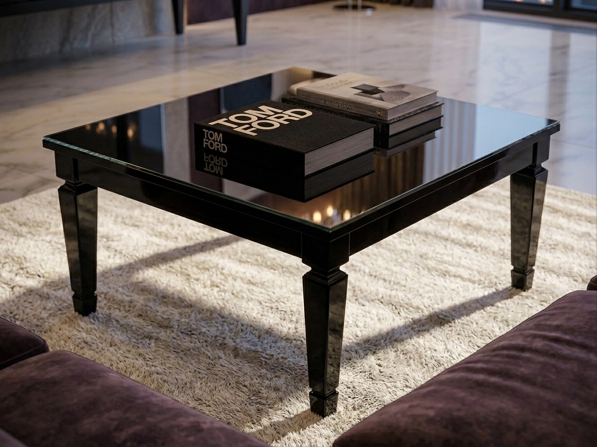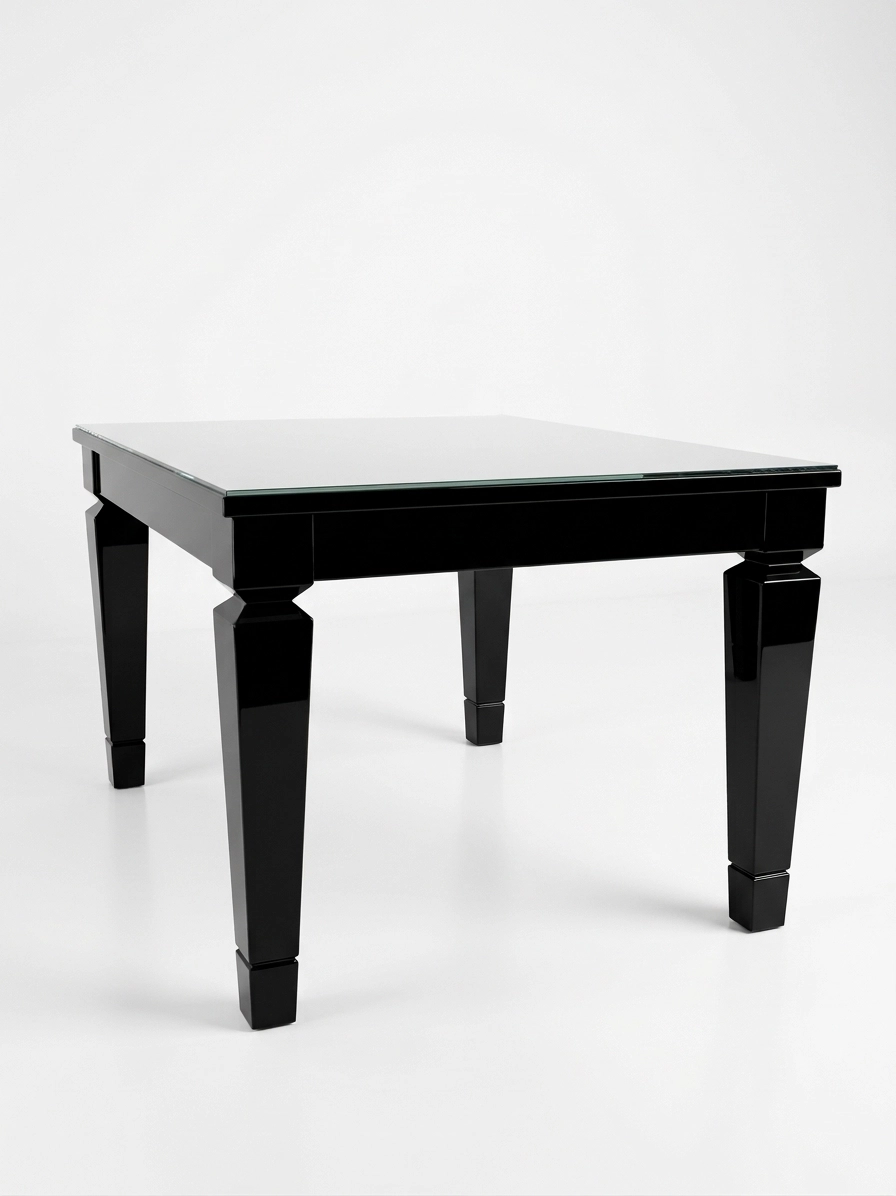 Stolik kawowy glamour DIAMOND nowoczesny, elegancki szklany blat, czarny wysoki połysk, 85 x 85 cm